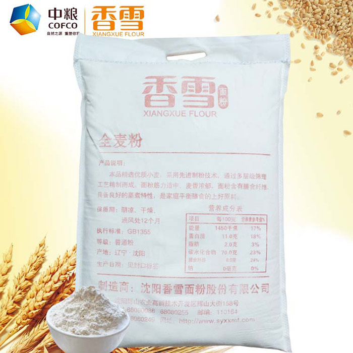 • 商品名稱:中糧香雪小麥粉10斤含麥麩適合各種家庭面食5Kg東北全麥面粉正品