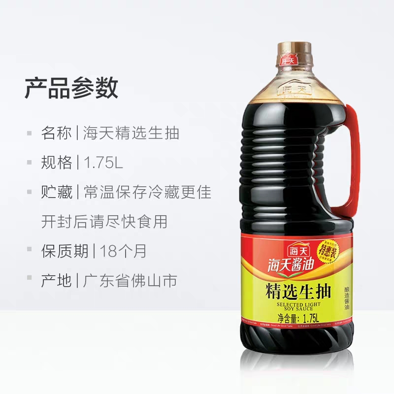 • 商品名稱:海天精選生抽1750ml 釀造醬油 涼拌炒菜火鍋調料